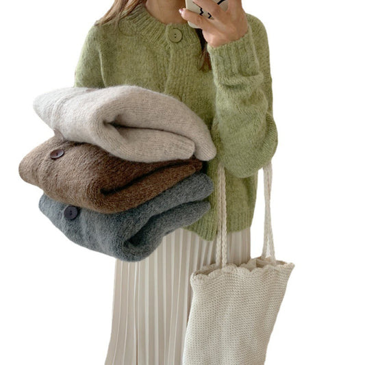 En PromotionCardigan Tricoté Vintage à Couleur Unie