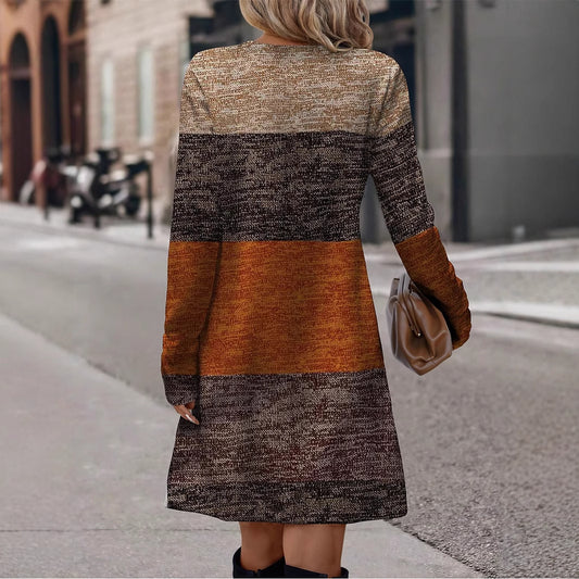 Robe Longue à Manches Contrastées et Imprimé