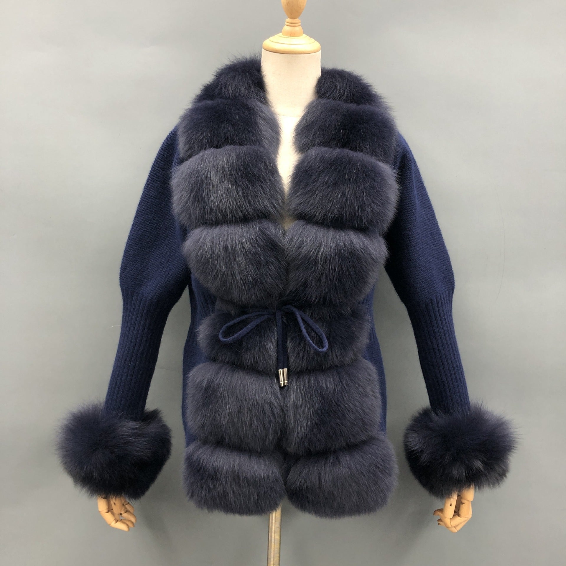 Un cardigan tricoté au style britannique intemporel, doté d’un col en fourrure de renard véritable pour une touche de luxe. Idéal pour une allure élégante et raffinée au quotidien.