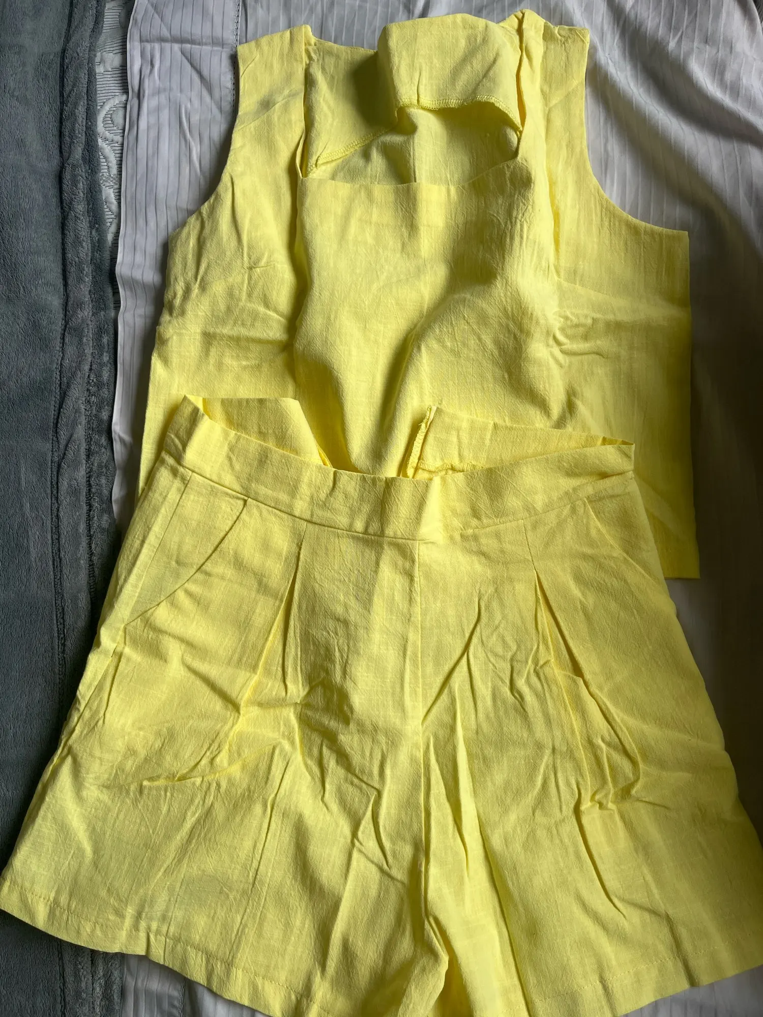 Disponible dans une variété de couleurs intemporelles, cet ensemble est idéal pour un look estival polyvalent. Associez-le à des sandales pour une allure décontractée ou à des accessoires raffinés pour un style plus chic. Cet ensemble est le parfait équilibre entre confort et élégance pour la saison estivale.