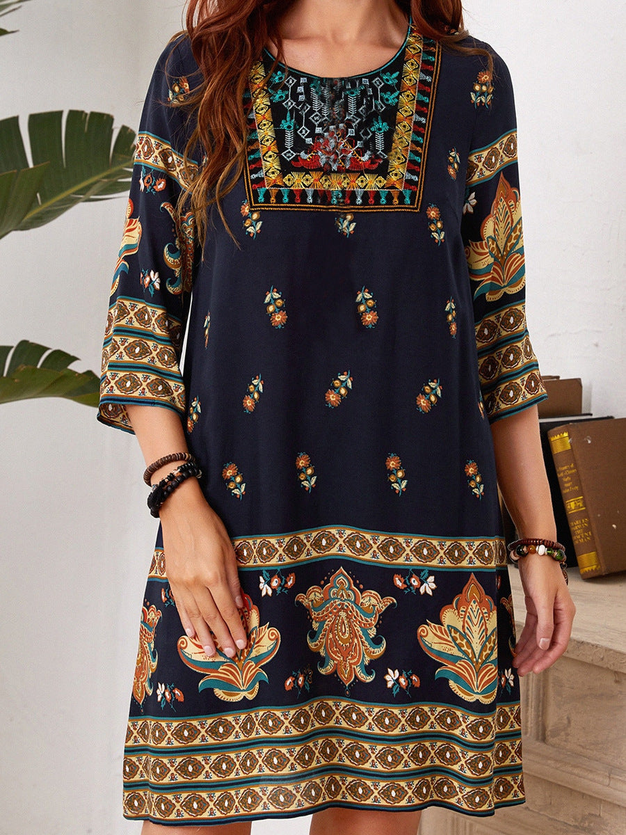 Cette robe au design rétro artistique incarne l'élégance et la créativité. Confectionnée en polyester de haute qualité, elle offre confort et légèreté tout en garantissant un style unique.